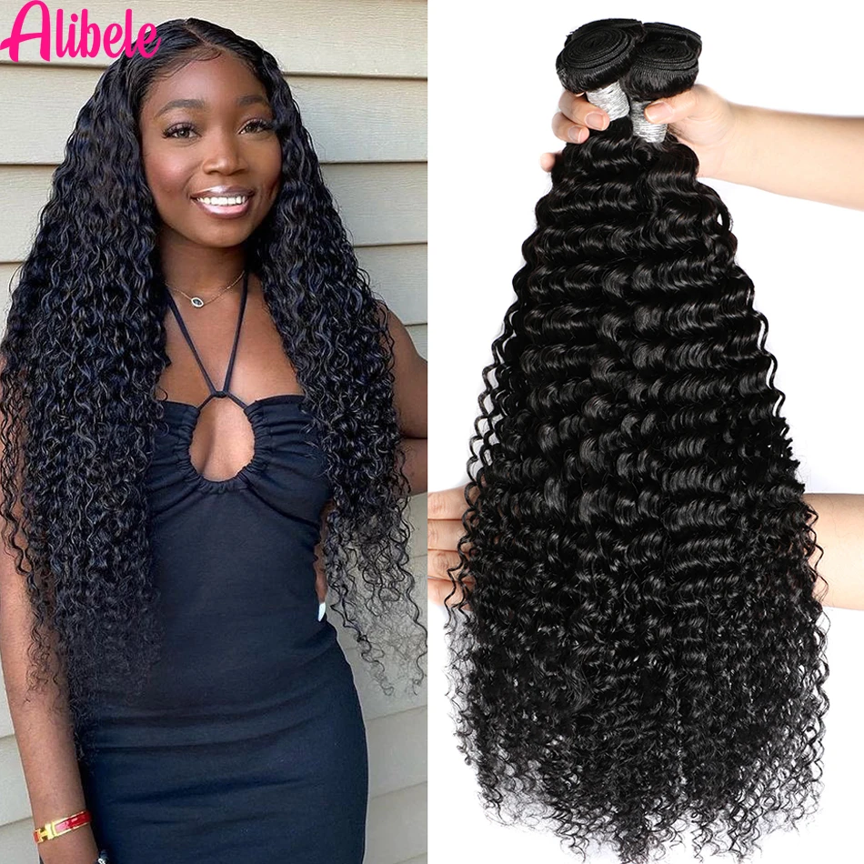 Alibele 10 30 Inch Brazilian Deep Wave Hair Bundle Deals 100 Human Hair Long Deep Curly Hair Weave Bundles Natural Black Color Aliexpress