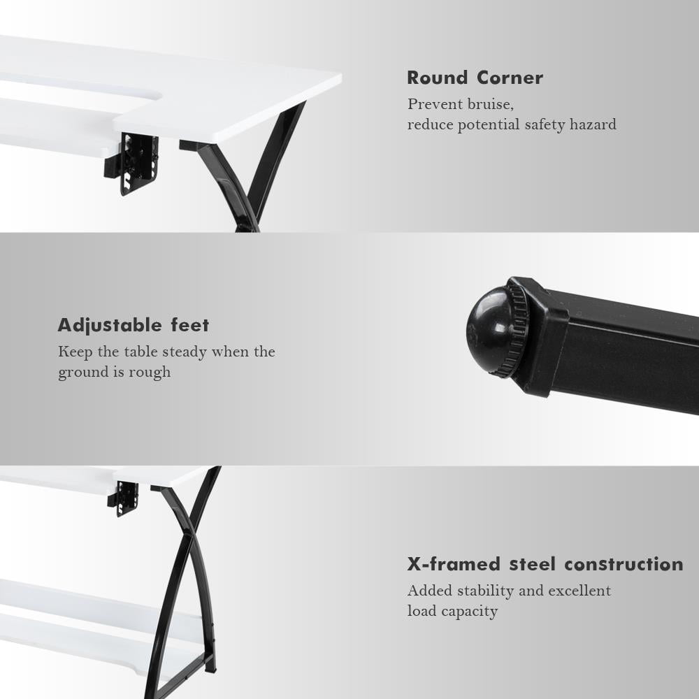 Oshion Folding Sewing Table Computer Desk With Adjustable Platform Folding Large White Walmart Com